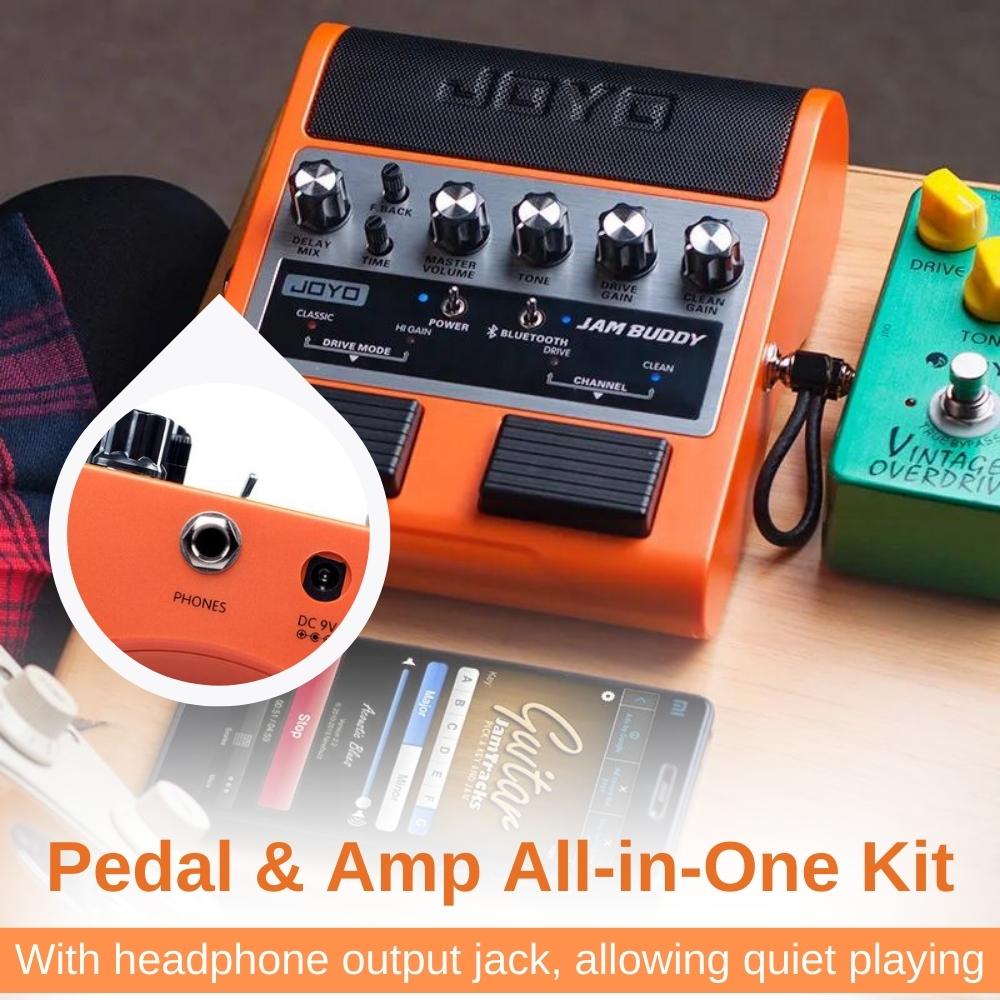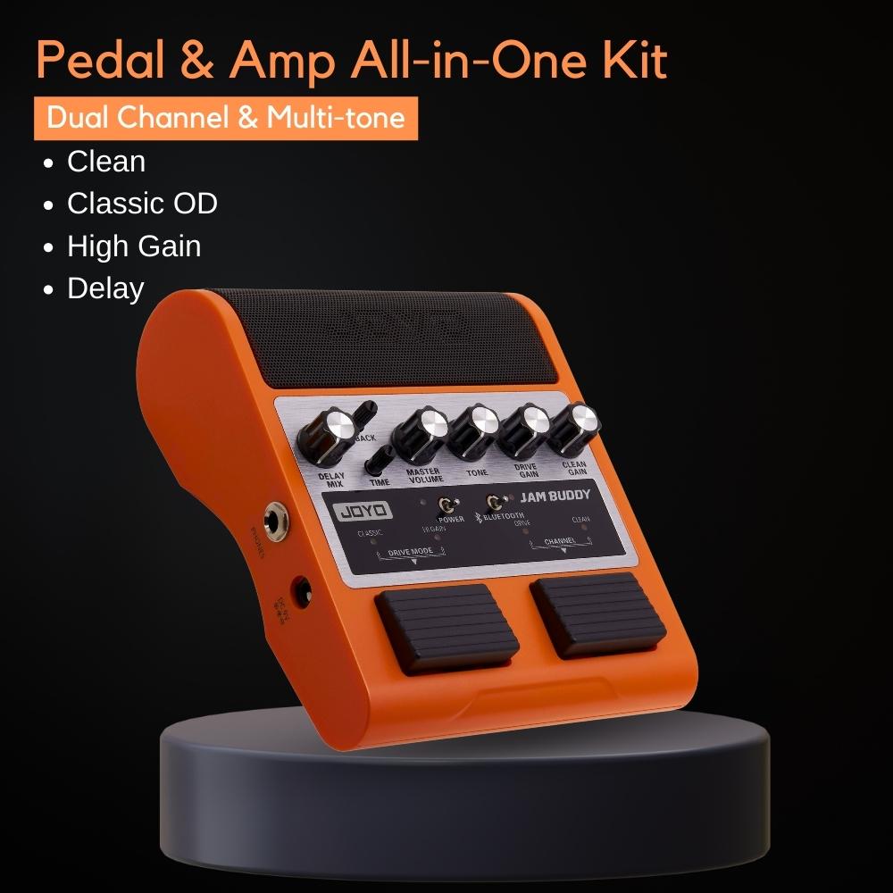Elevate your guitar playing to new heights with JOYO JAM BUDDY Guitar Amp and Pedal Combo. This powerful combination brings together the best of both worlds—a high-quality amplifier and a versatile effects pedal—in one convenient package.